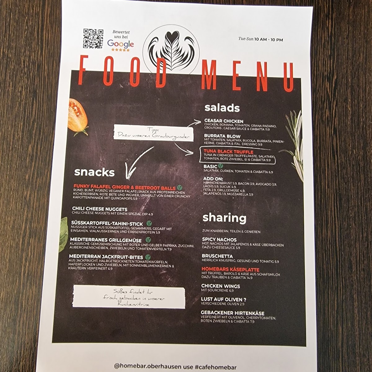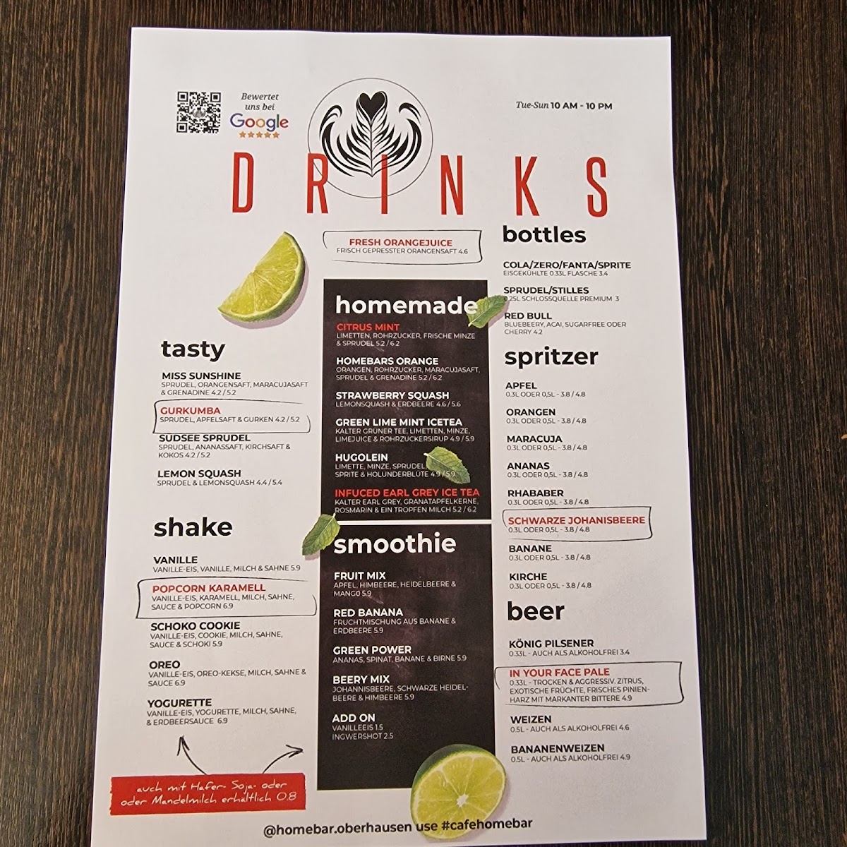 In conclusion, Homebar - Oberhausen is more than just a café; it’s a warm embrace within the bustling city, where friendly service meets unparalleled food quality. With every meal, you are bound to create memories that linger long after your visit. So come in, grab a bite, and enjoy the exquisite flavors and inviting atmosphere that has Oberhausen raving. Don’t just take our word for it—experience it for yourself, and you’ll surely find yourself coming back for more!